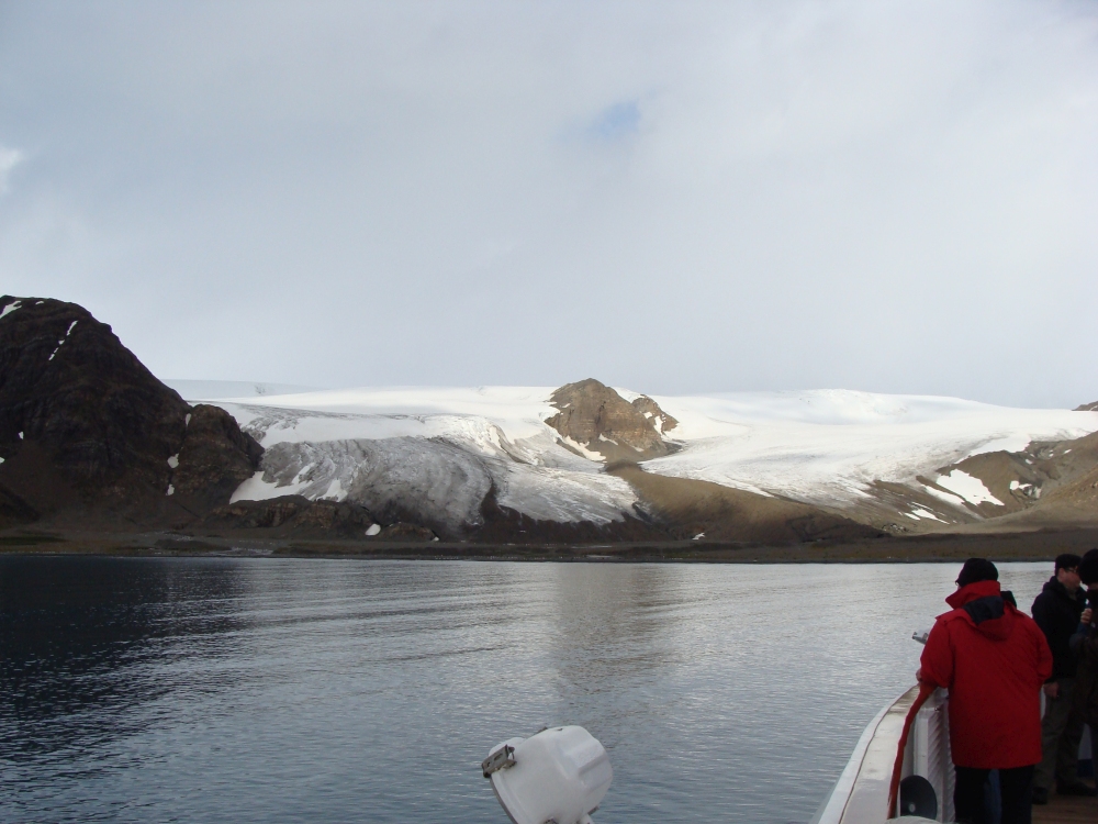 Om aan land te gaan werden we in groepjes van een man of 10 in rubber boten gezet en naar de wal gevaren. Om besmetting van het vasteland te voorkomen moesten we onze schoenen bedekken met plastic schoentjes.